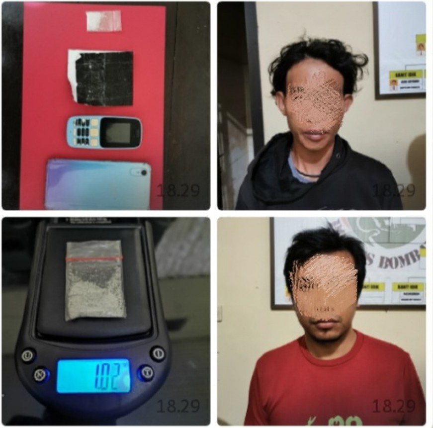 Saat diberhentikan diketahui bahwa orang yang sedang dibonceng membuang sesuatu dari tangannya ke bahu jalan dan setelah dilakukan penggeledahan terhadap kedua pengendara sepeda motor serta disekitar TKP, ditemukan bungkusan warna hitam di bahu jalan dan setelah dibuka bungkusan tersebut diketahui berisi 1 (satu) saset pelastik ukuran sedang yg berisi butiran kristal di duga narkotika jenis sabu dengan berat Bruto 1.02 (satu koma nol dua) gram.