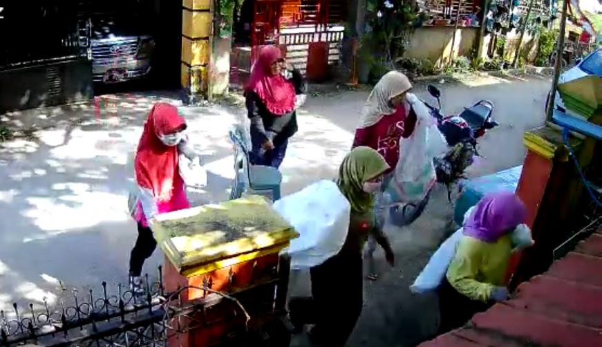 Video yang berdurasi sekitar dua menit itu terlihat kelima ibu-ibu pemulung berjalan sambil membawa karung masuk ke dalam rumah warga.