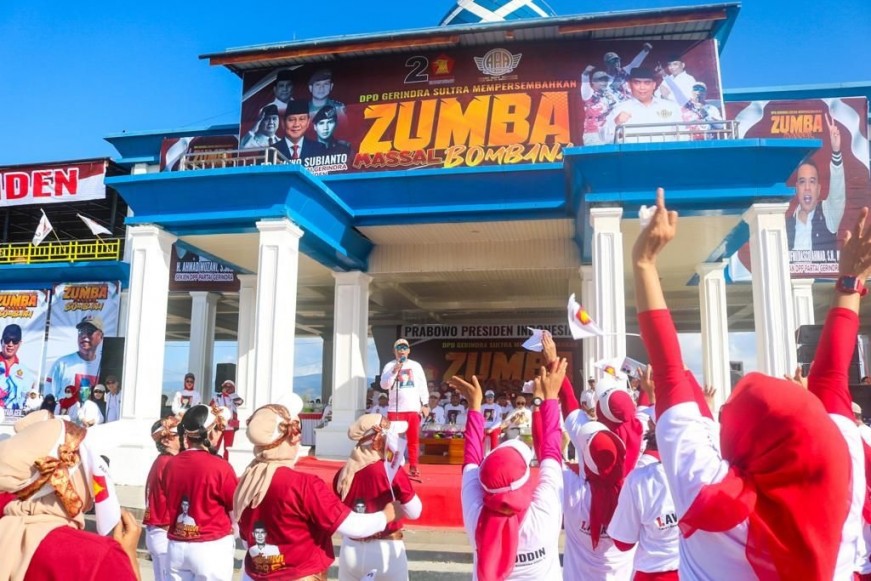 Suara Prabowo Presiden, Triple A DPR RI menggema di tempat kegiatan yang dihadiri oleh ratusan Emak-emak yang terlihat sangat antusias mengikuti senam aerobik tersebut. Ketua DPD Gerindra Sultra, Andi Ady Aksar (Triple A) yang membuka kegitan tersebut terharu dengan antusias masyarakat Bombana.