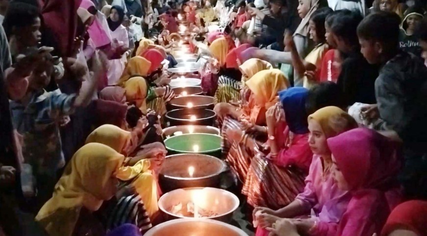 Di depan para gadis terdapat sebuah baskom besar yang didalamnya terdapat lilin.