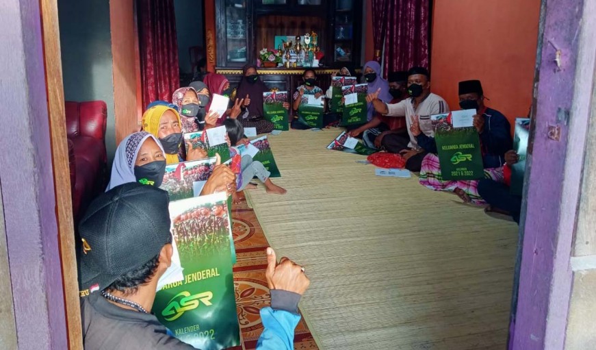 Dalam sosialisasi relawan membagikan atribut ASR berikut kalender dan masker cegah penularan Covid-19.