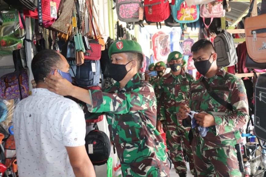 Buton Utara | sapasultra.com - Personel Kodim 1429/Butur secara rutin menyampaikan himbauan dan edukasi Protokol Kesehatan (Prokes) Covid-19 kepada warga dimasa Pemberlakuan Pembatasan Kegiatan Masyarakat (PPKM) Mikro untuk mencegah penyebaran Virus Covid-19.