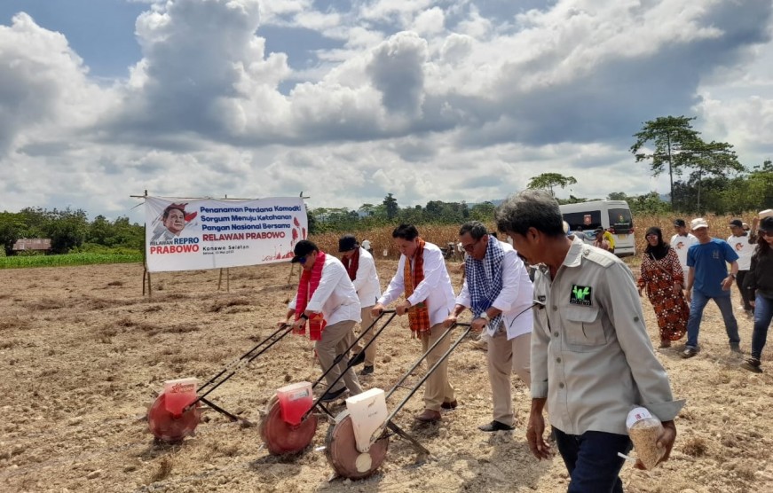 Ketua Relawan Prabowo melakukan penanaman Sorgum di lahan masyarakat.