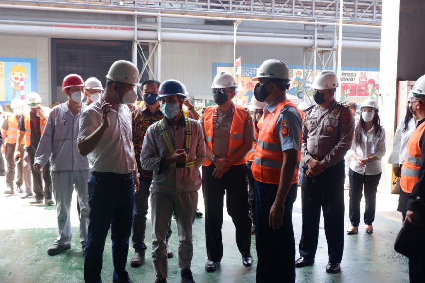 Para peserta SSDN PPRA Lemhannas Angkatan LXIII mengunjungi pabrik pemurnian nikel milik PT VDNI dan peleburan baja (stainless steel) milik PT OSS di kawasan industri Morosi, Kabupaten Konawe.