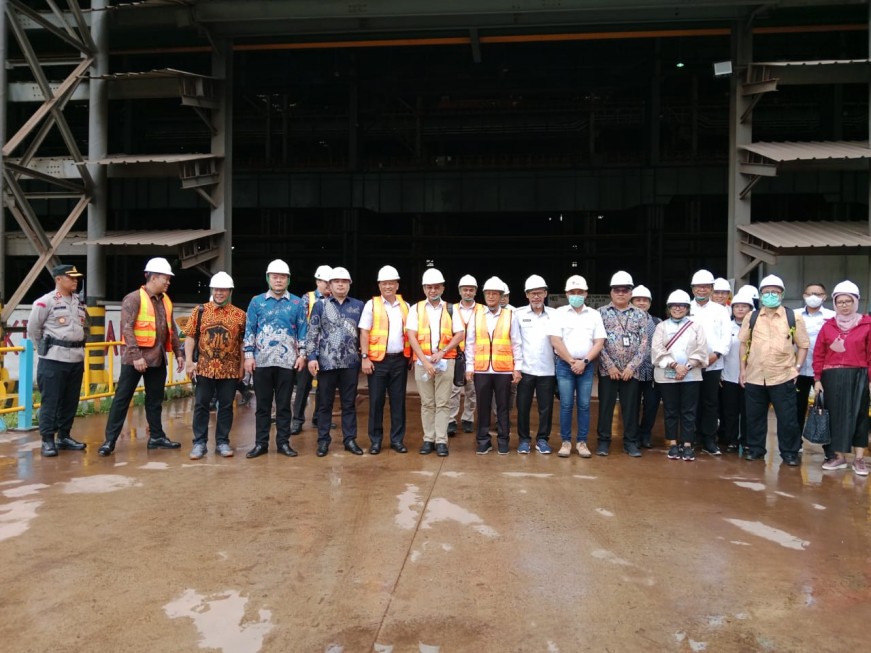 rangka meninjau 2 perusahaan pabrik smelter ore nikel PT Virtue Dragon Nikel Industri (VDNI) dan PT Obsidian Stainless Steel (OSS) yang berada di Kecamatan Morosi, Kabupaten Konawe, Sultra.