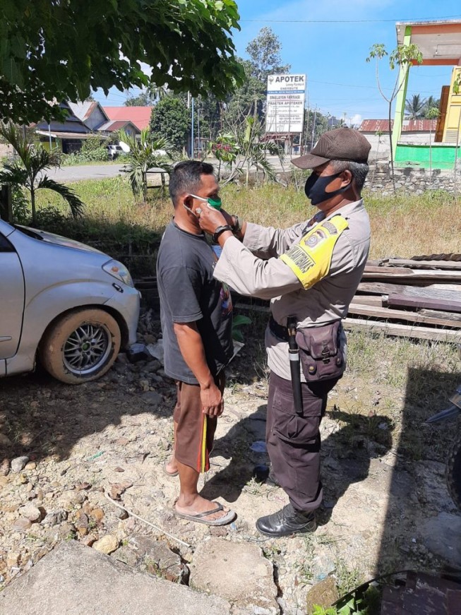Dalam kesempatan itu Bripka Jamaluddin telah membagikan masker kepada masyarakat tersebut secara gartis juga menghimbau masyarakat agar lebih disiplin dalam menarpkan prtokol kesehatan.