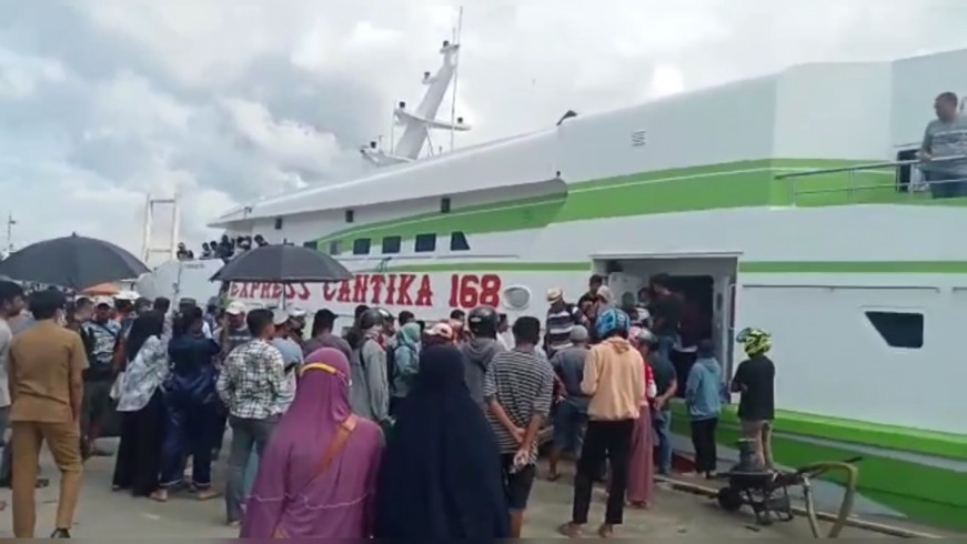 BAUBAU, SAPASULTRA.COM - Kapal cepat KM Ekspress Cantika 168 rute Baubau-Kendari menabrak karang di sekitar Pulau Hari perairan Kendari, Selasa (14/3/2023).