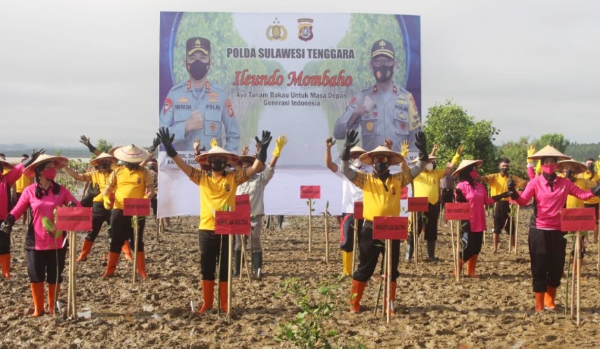 Dalam kesempatan tersebut Polda Sultra bergerak bersama-sama melaksanakan penanaman mangrove yang merupakan salah satu solusi menjaga kembali kelestarian alam serta dapat menumbuhkan perekonomian masyarakat.