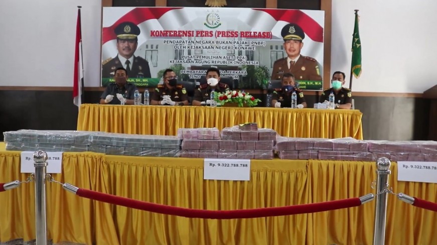 Kendari | sapasultra.com - Pusat Pemulihan Aset (PPA) Kejaksaan Agung bersama Kejaksaan Tinggi Sulawesi Tenggara (Sultra) dan Kejaksaan Negeri Konawe, menyetor ke kas negara uang hasil lelang barang sitaan dan eksekusi pidana denda perkara pertambangan.