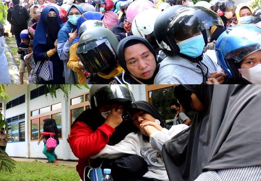 Beberapa pengantri yang terdiri dari emak-emak Pingsan dan jatuh dari barisan antrian. Diduga mereka pingsan karena kelelahan.