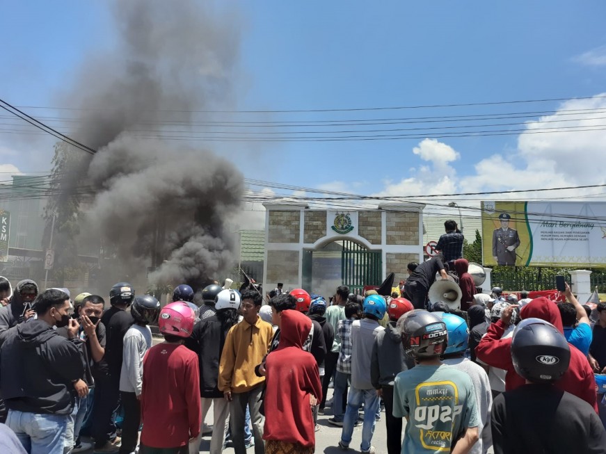 KENDARI, SAPASULTRA.COM - Ratusan massa yang tergabung dalam Lembaga Pemantau Penegak Hukum (LPPH), Gerakan Muda Pemerhati Tambang (GMPT), serta Gerakan Persatuan Masyarakat Indonesia (GPMI) mendatangi Kantor Kejaksaan Tinggi Sulawesi Tenggara (Kejati Sultra) pada Senin, (04/05/2023).