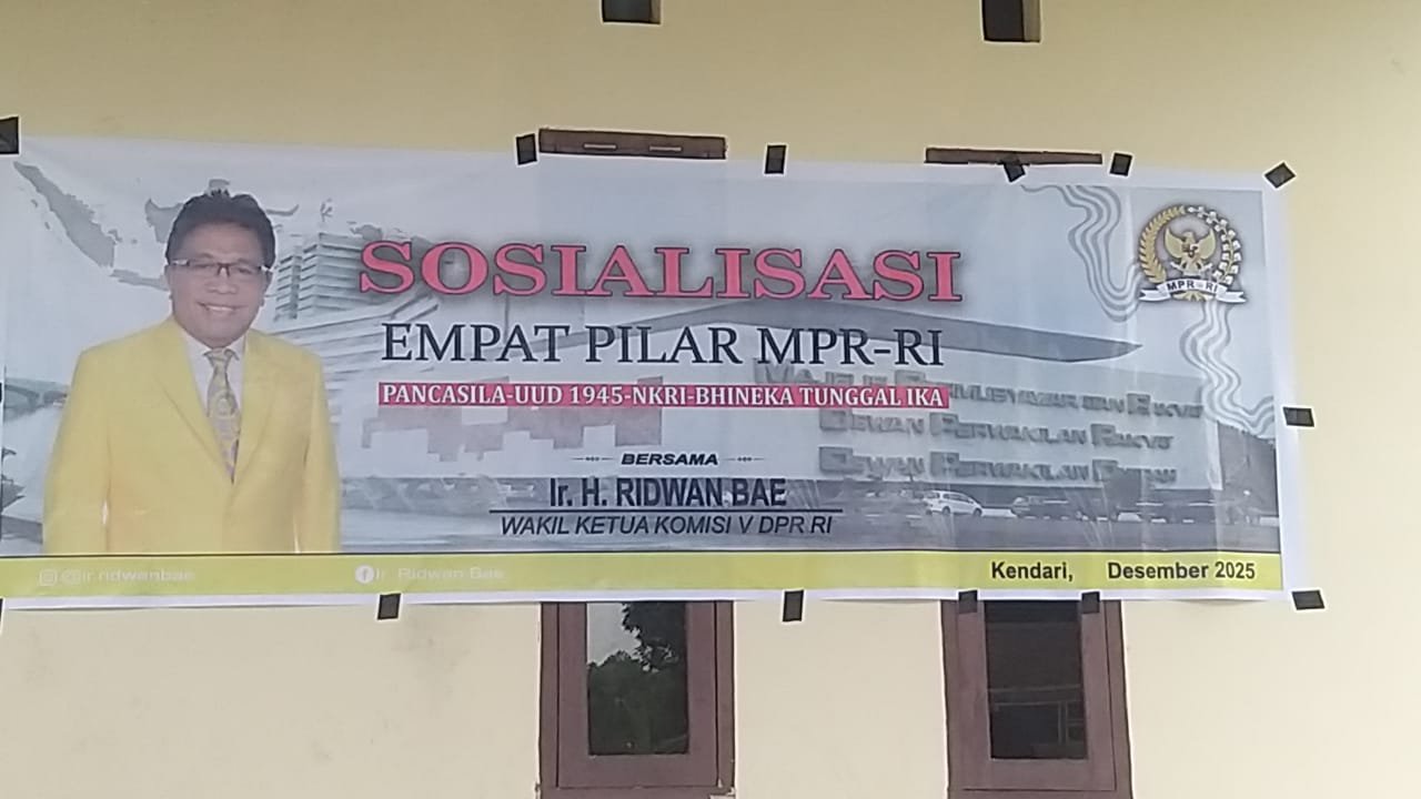 KENDARI, SAPASULTRA.COM - Wakil Ketua Komisi V DPR RI, Ridwan Bae, turun langsung ke masyarakat melakukan sosialisasi Empat Pilar MPR RI di Kota Kendari, Sulawesi Tenggara, Jumat (12/12/2025).