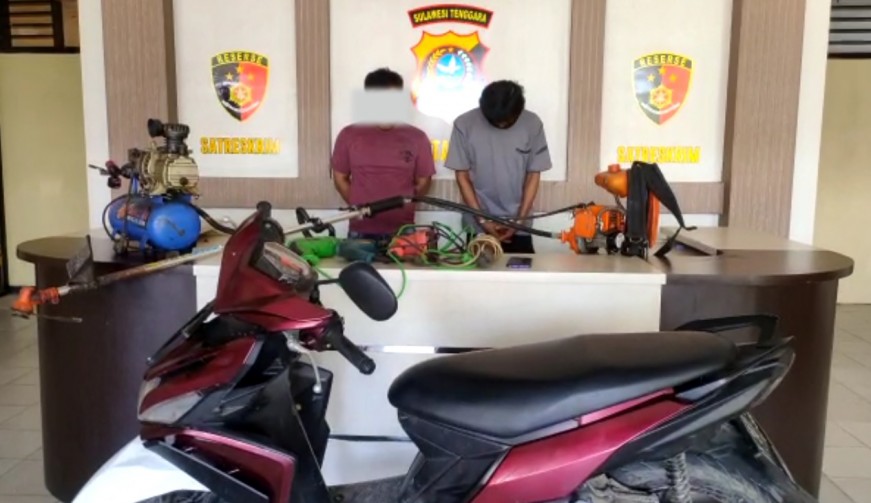 Dari tangan kedua pelaku sejumlah barang bukti, diantaranya satu unit sepeda motor, kompresor, dan alat - alat pertukangan.
