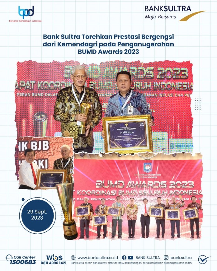 JAKARTA, SAPASULTRA.COM - PT Bank Pembangunan Daerah Sulawesi Tenggara (PT.BPD Sultra) atau Bank Sultra kembali menorehkan prestasi membanggakan di tingkat nasional.