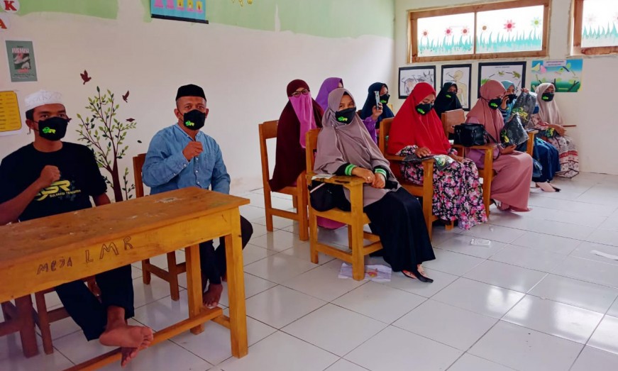 Pada sosialisasi ini tim relawan membagikan baju kaos dan masker ASR.