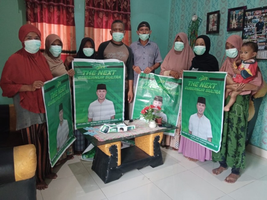 Relawan juga membagikan biner ASR masker kepada warga dan tuai dukungan penuh untuk ASR di Pilgub Sultra mendatang.