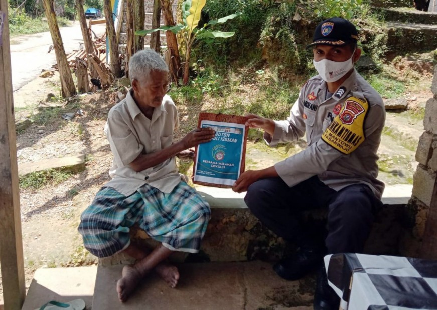 Ditengah wabah Covid-19, Bhabinkamtibmas secara door to door memberikan paket tersebut, selain itu untuk menghindari kerumunan massa.