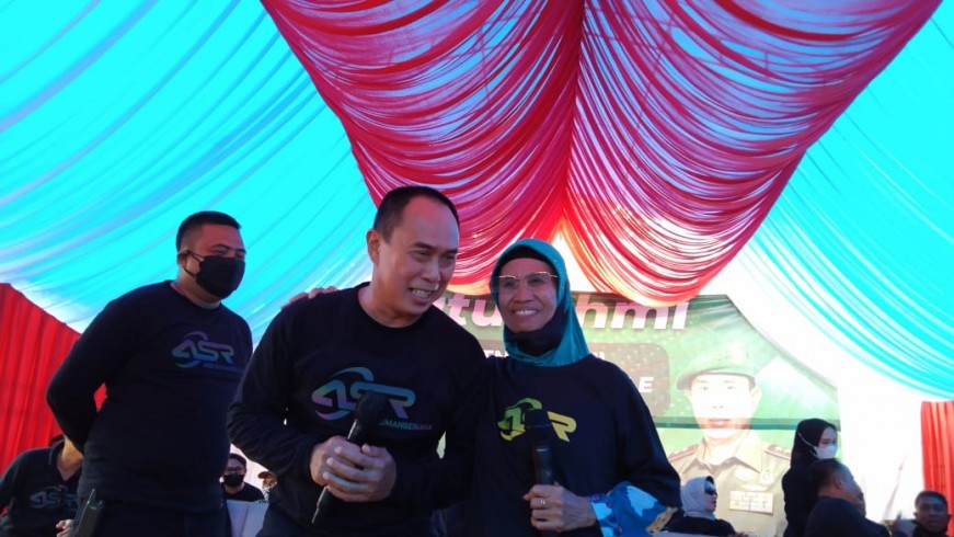 Siti Min yang dipanggil naik dipanggung tempat ASR sedang memberikan sambutan, langsung berinteraksi dengan ASR. ASR langsung menyampaikan kepada Siti Min untuk menanggung seluruh biaya sekolah anak Siti Min.