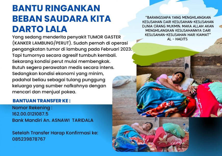 Tapi saat ini, Lala kembali terkapar tak berdaya diatas tempat tidurnya. Tumor yang telah diangkat sebelumnya, terus tumbuh secara agresif. Bahkan kini menjadi lebih besar. Tindakan dan perawatan medis sangat Lala butuhkan. Disisi lain, kondisi ekonomi keluarga Lala serba kekurangan.