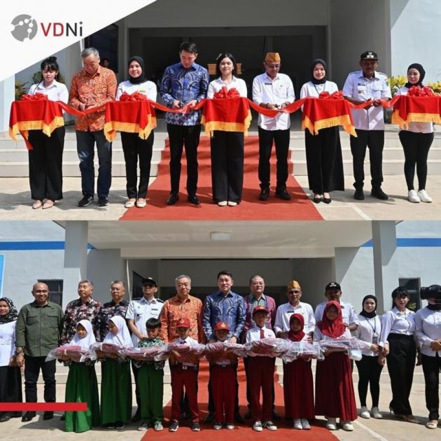 Kepala Dinas Pendidikan dan Kebudayaan Konawe, Dr. Suriyadi dalam sambutannya menyampaikan ucapan terima kasih kepada pimpinan perusahaan PT. VDNi serta Yayasan Tony dan Endrew foundation atas pembangunan gedung sekolah dasar ini.