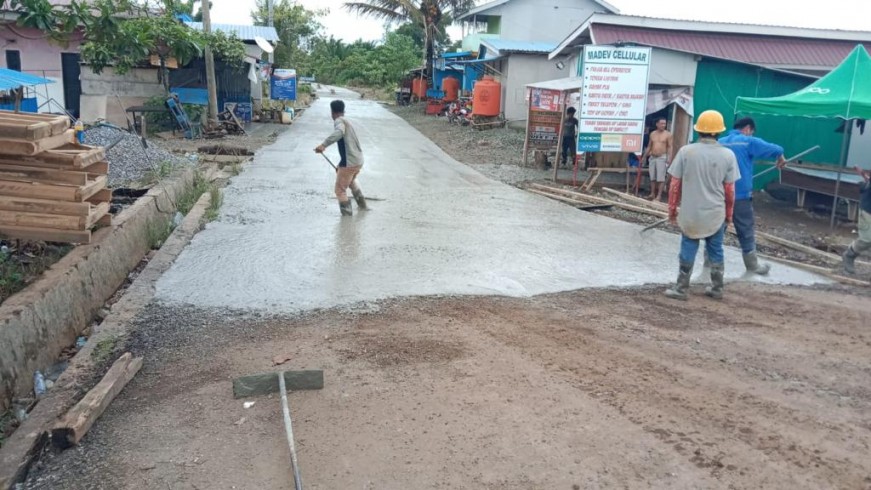 Kepala Desa Tani Indah Muh Juslan mengatakan, pembangunan jalan beton tersebut sudah berlangsung selama sepuluh hari dengan panjang jalan dua kilometer. Pembangunan tersebut berlangsung di dusun dua dan tiga.