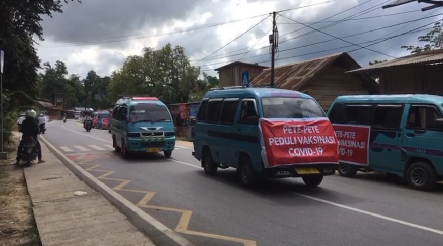 Puluhan unit Pete-pete yang menyebut namanya “Pete-pete Peduli Vaksinasi COVID-19” mengerahkan ratusan pelajar dan masyarakat umum untuk mengikuti program Vaksinasi COVID-19 yang diselenggarakan oleh Badan Intelijen Negara Daerah Sulawesi Tenggara (BINDA Sultra) bersama Pemkot Kendari di SMAN 2 Kendari.