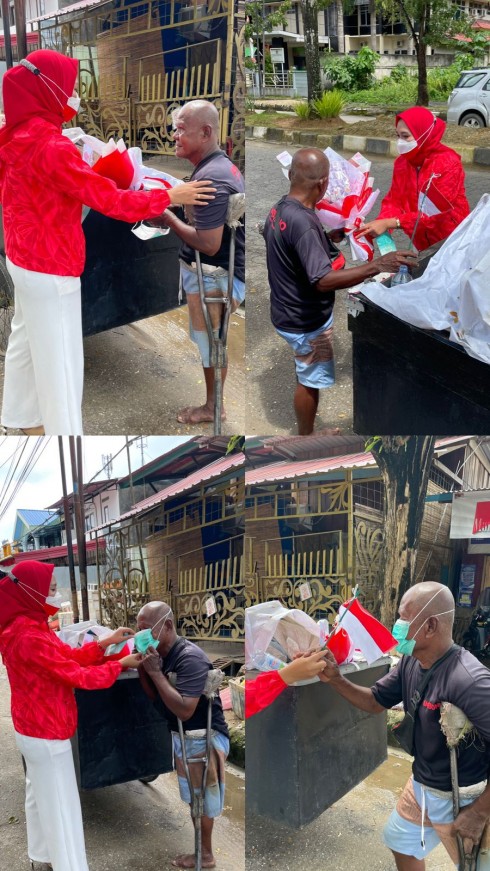 Momen HUT Kemerdekaan RI ini, Anggota DPRD Kota Kendari asal Fraksi PDI-P, turun ke masyarakat membagikan buket bunga berisi uang asli kepada warga kurang mampu.