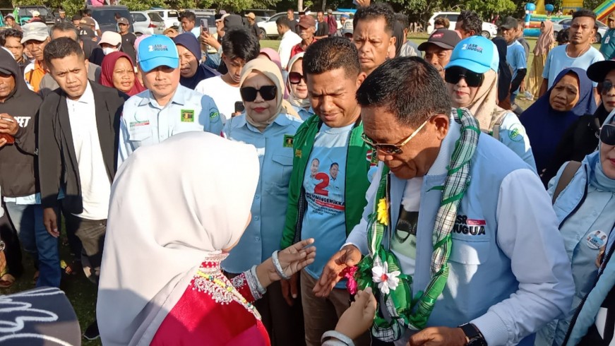 Paslon nomor urut 2 dengan akronim ASR-Hugua itu hadir di lokasi kampanye sekitar pukul 16.00 Wita. Dan disambut dengan pengalungan salt dan tarian adat setempat. Ribuan massa diperkirakan sekitar 2.000 ribu antusias mengikuti jalannya kampanye.
