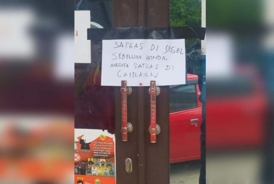 Diduga penyegelan terjadi lantaran honor anggota satuan tugas belum dibayar terhitung sejak April sampai Oktober 2021.