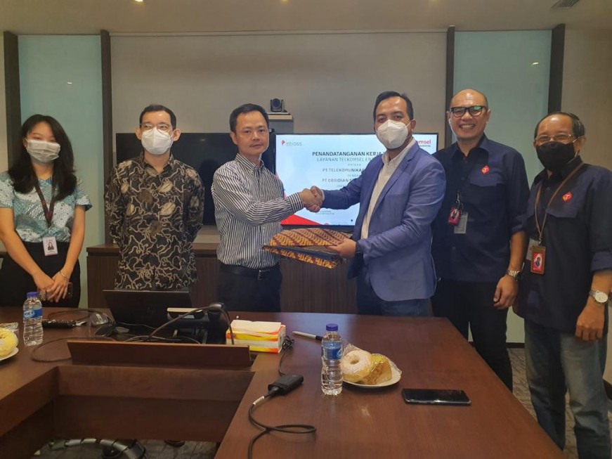 Nota Kesepahaman ditandatangani oleh Vice President Area Account Management Telkomsel, Yogi Rizkian Bahar dan President Director PT OSS, Dai Guofang di Kantor Pusat PT OSS di Jakarta pada Jumat lalu (27/5).