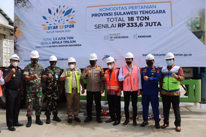 Dalam menyukseskan Gebyar Ekspor, Karantina Pertanian Kendari bersama Gubernur, Ali Mazi dan Kapolda Sulawesi Tenggara, Irjen Pol. Drs. Teguh Pristiwanto melakukan pelepasan ekspor komoditas pertanian sebanyak 18 ton dengan nilai barang mencapai Rp. 333.685 Juta melalui Pelabuhan Petik Kemas Kendari New Port Kendari. Jumlah ini melengkapi jumlah ekspor secara nasional yang dilepas secara bersamaan di 34 pintu pengeluaran sebesar Rp. 14.4 Triliun.
