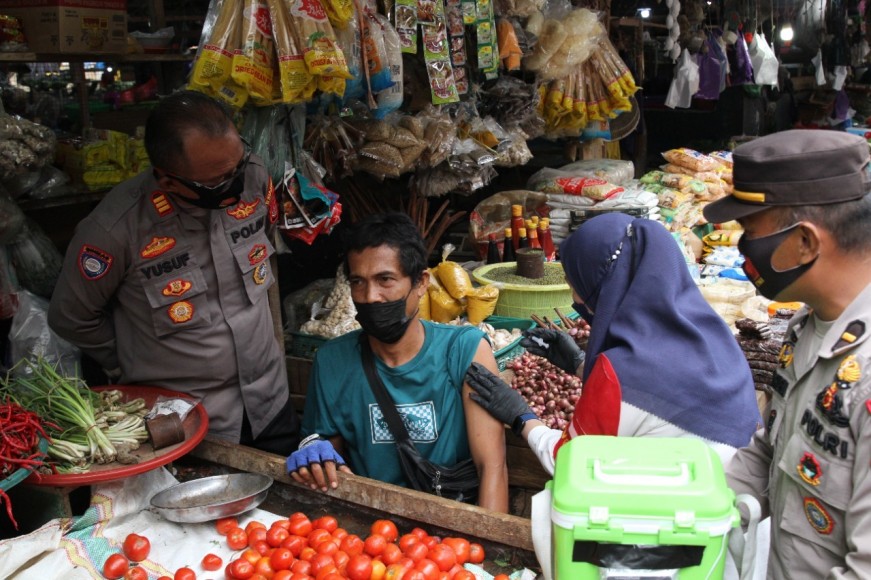 Upaya ini sengaja dilakukan untuk mengakomodir warga dan pedgang yang tidak bisa mengikuti vaksinasi di Gerai vaksin dan Puskesmas, karena harus bekerja. Vaksinasi Di Pasar kali ini, Polres Kendari mengerahkan sejumlah tenaga vaksinator dari tim Dokkes Polres Kendari dan Polwan Polres Kendari Sebagai P-Care.