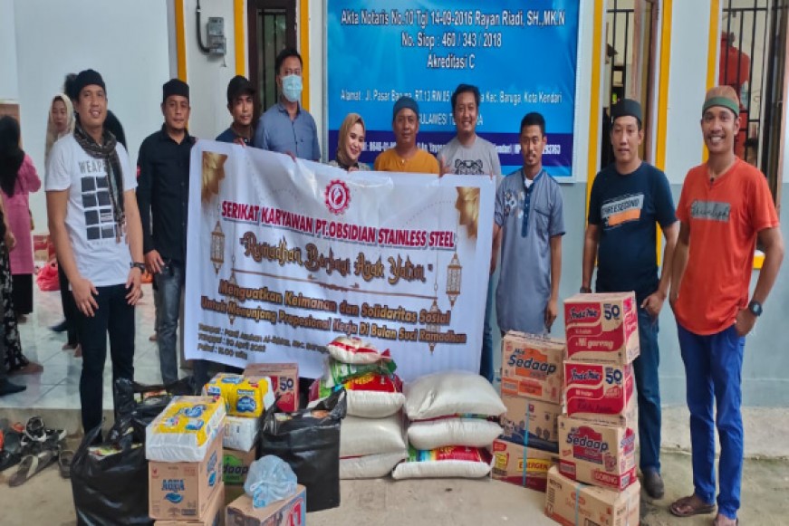 Kendari| sapasultra.com - Berkah Ramadhan 1443 Hijriyah Tahun 2022 M Serikat karyawan PT OSS menggelar kegiatan sosial dengan menyalurkan bantuan sembako ke panti asuhan Al Ikhlas Baruga Kendari, Selasa 19 April 2022.
