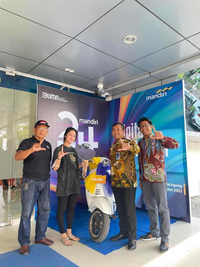 Untuk memudahkan segala transaksi, Rini Damayanti mendownload aplikasi Livin by Mandiri, baik itu untuk pembayaran dengan QRIS Livin, transfer antar bank, transaksi bayar, transaksi top up, dan keperluan lainnya. “Saya dihubungi oleh pihak Bank Mandiri, bahwa telah memenangkan undian Program Livin to The Max dan mendapatkan hadiah satu unit Vespa. Rahasianya adalah rajin transaksi melalui Livin by Mandiri” terang Rini Damayanti.