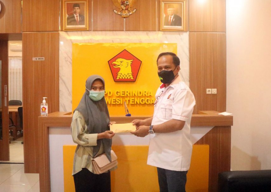 Partai Gerindra Sultra misalnya, memberikan bantuan biaya pendidikan kepada salah satu kadernya yang akan melanjutkan pendidikan di Sekolah Tinggi Kesehatan Mandala Waluya Kendari.
